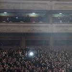 Onstage, South Korean K-Pop Stars. In the Balcony, Kim Jong-un, Clapping.